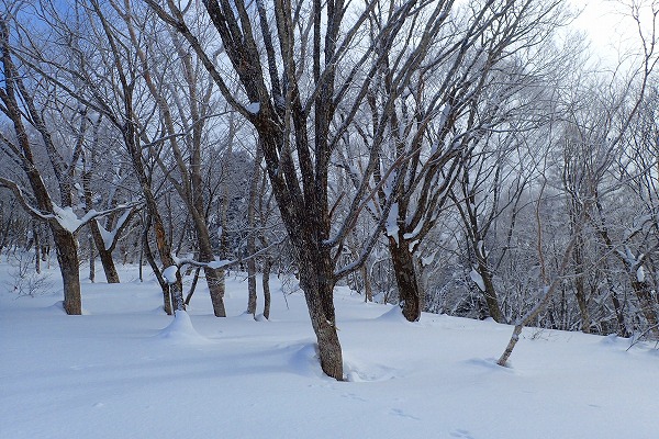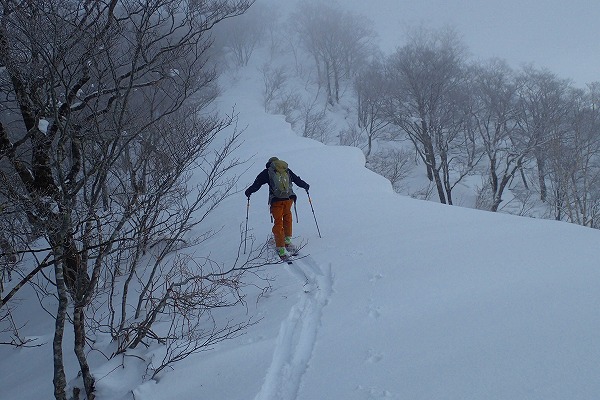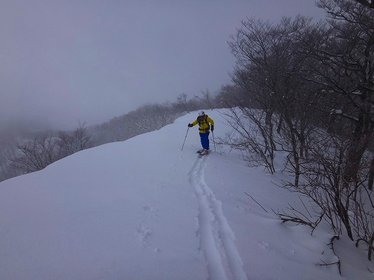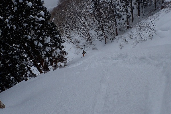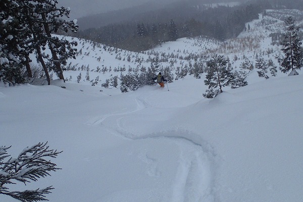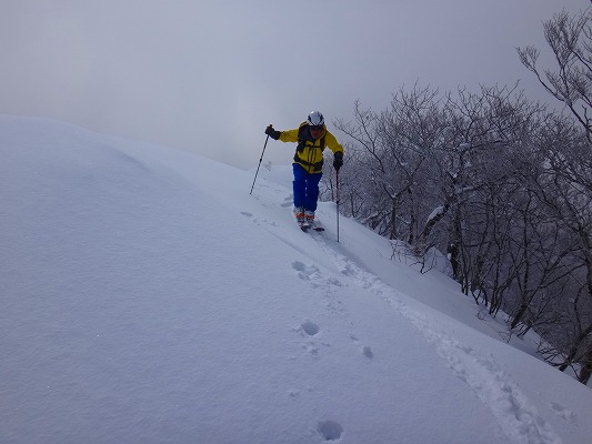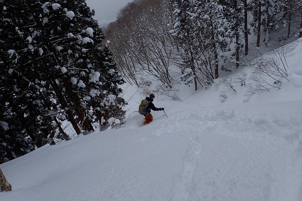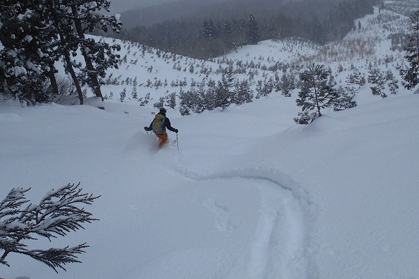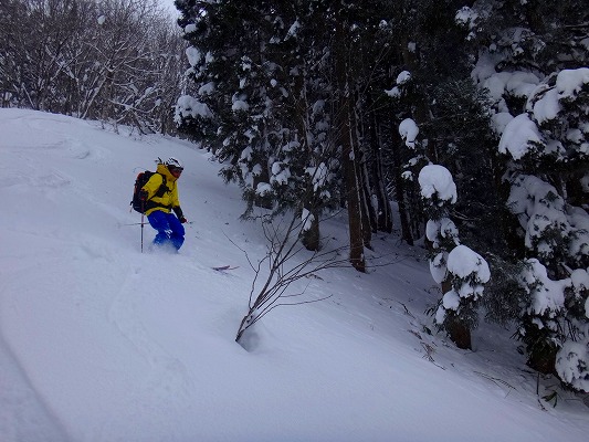 奥美濃の石徹白周辺は山スキーエリアとしては好きな山域でよく行っているが、石徹白川東部の山はほとんど行ったことがなく全く未知の領域だった。がおろさんには、石徹白東部の年寄向け穴場コースを、とお願いしたが、今回のコースは、快適滑降斜面こそあまり無いがいかにも奥美濃らしいなかなか味わい深い、良いツアーコースだった。